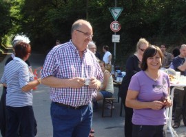 Helenabrunn, 31.5.2011 - Trotz Fahrverbotes wird die obere Helenenstrasse nach wie vor als Abkürzung von - meist - Gewohnheitstätern genutzt, um vom Mönchengladbacher Norden (Großheide, Maria-Hilf-Krankenhaus) schneller auf die Autobahn zu gelangen. Polizeikontrollen finden zu selten statt, um dem Einhalt zu gebieten. Spontan wurde unter einem der einschlägigen Verbotsschilder eine sonntägliche Kaffeetafel veranstaltet, um uneinsichtige Autofahrer auf ihr verbotenes Tun aufmerksam zu machen. Die Rheinische Post berichtete ausführlich darüber. Auch die Politik unterstützte durch die Anwesenheit von Bürgermeister (stv.) Heinz-Willi Bouren (CDU) und Monika Ruff-Händelkes (SPD) die Aktion. Lesen Sie hier den Bericht aus der Rheinischen Post vom 31.5.2011.